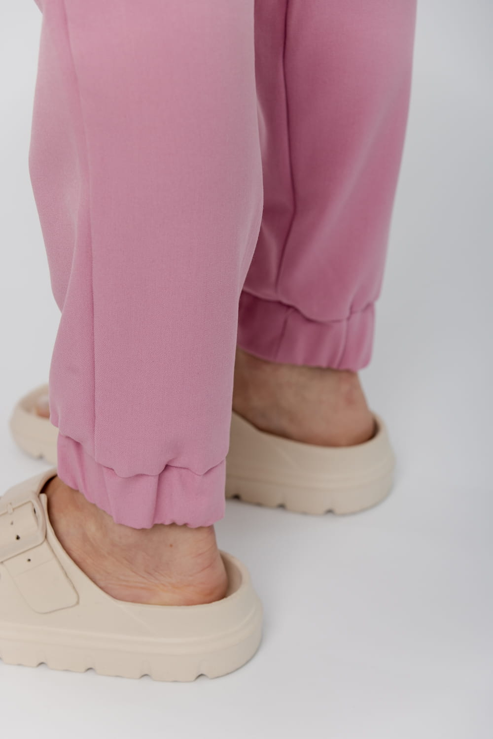 - Gumka przy kostkach idealnie układa spodnie, nie ograniczając ruchów.